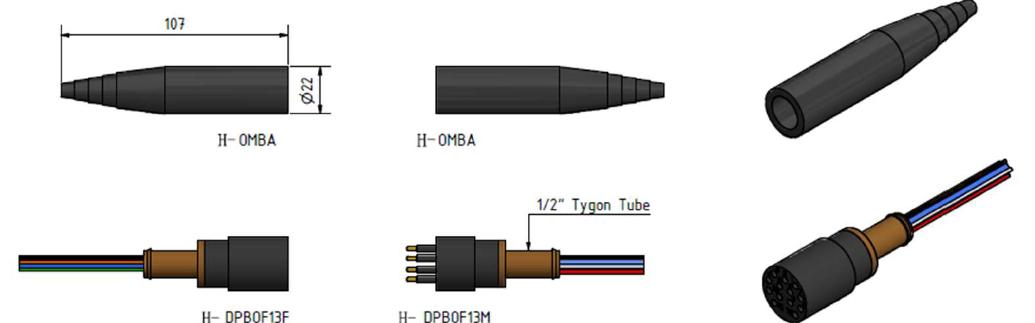 卡普蒂姆定制穿舱接头可支持上限16芯传输,工作电压上限可达600V,能够在耐受70MPa高压的条件下稳定工作。标准连接器包含带缆插头和面板安装插座以及防水堵头,采用高等级氯丁橡胶和不锈钢材料制成,插头后可接防水电缆,插座后接有特氟龙外皮的多股尾线,锁紧盖使用高分子材料浇铸而成,配合不锈钢的弹性卡环使用。